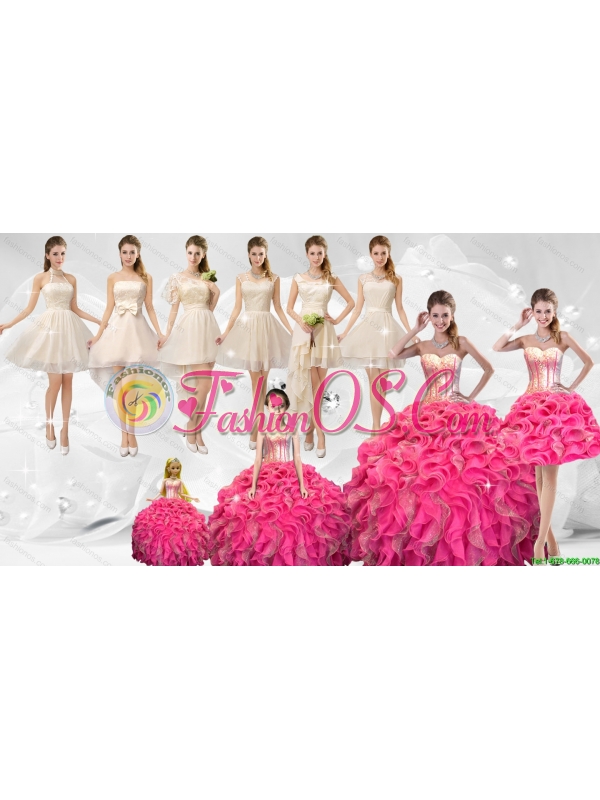 Home >  Quinceanera Dresses >  Quinceaneara Package > Discount Sequined Quinceanera Dresses and Champagne Dama Dresses and Perfect Straps Little Girl Dresses and Popular Short Prom Dresses