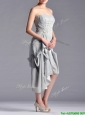Discount Side Zipper Strapless Silver Mother of the Bride Dress in Asymmetrical