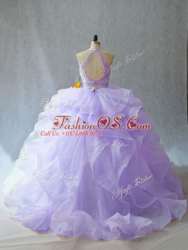 Discount Sleeveless Brush Train Beading and Ruffles Backless Vestidos de Quinceanera