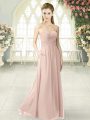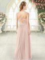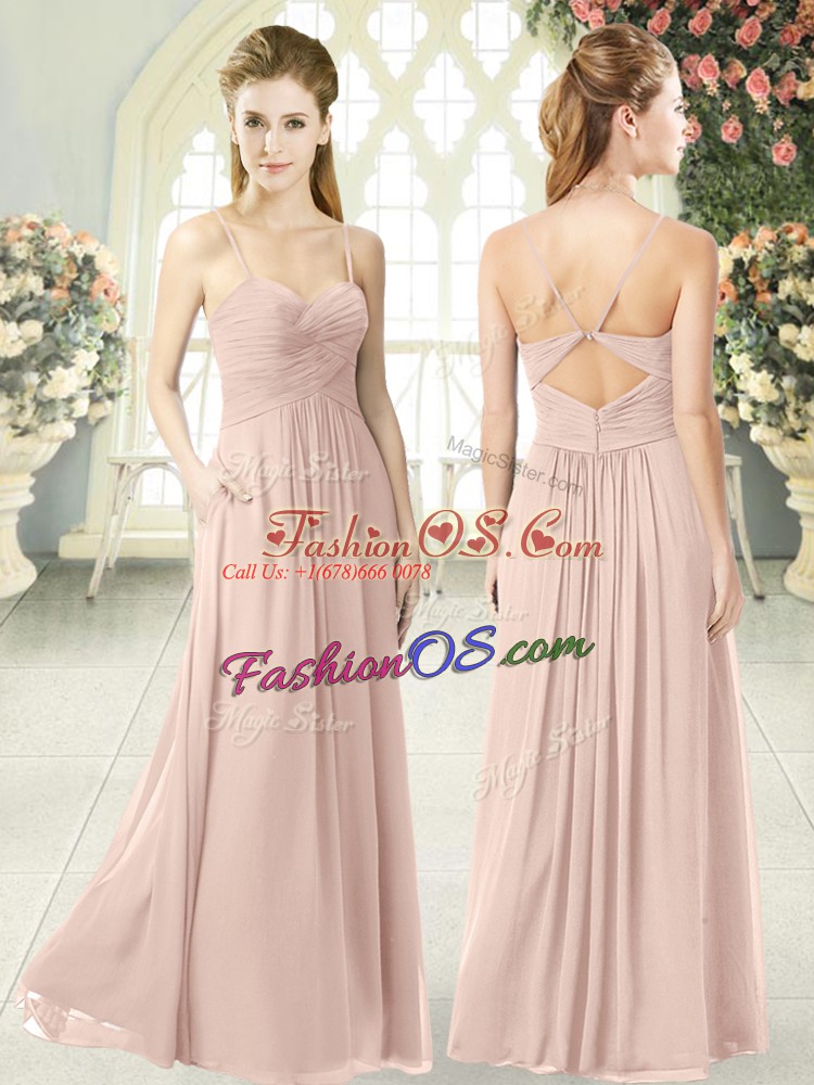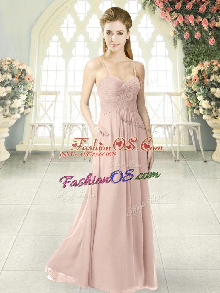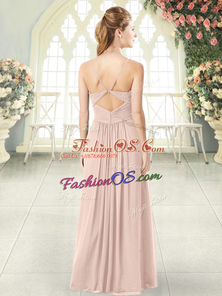 Discount Sleeveless Chiffon Floor Length Criss Cross Prom Evening Gown in Pink with Ruching