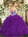 Discount Sleeveless Floor Length Beading and Ruffles Lace Up Quinceanera Dresses with Teal