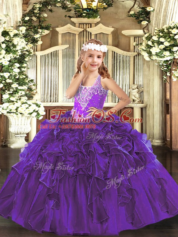 Home >  Special Occasion Dresses >  Lovely Little Girl Pageant Dresses > Discount Sleeveless Lace Up Floor Length Beading and Ruffles Little Girl Pageant Gowns