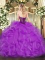 Discount Sleeveless Organza Floor Length Lace Up 15 Quinceanera Dress in Olive Green with Beading and Ruffles