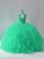 Discount Sleeveless Tulle Lace Up 15 Quinceanera Dress in Turquoise with Beading and Ruffles
