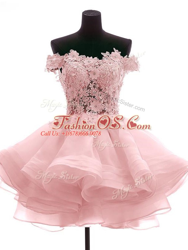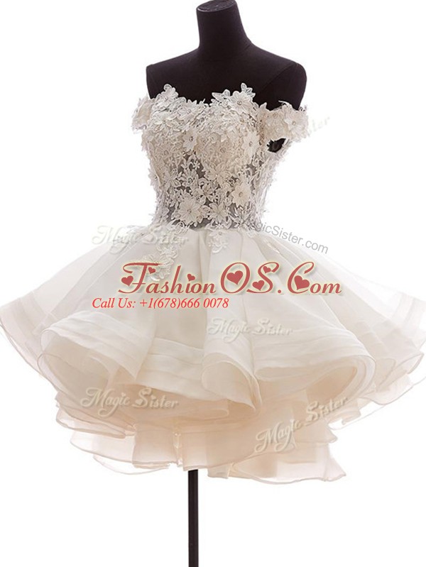Discount Sleeveless Zipper Mini Length Lace and Appliques and Ruffles Party Dress for Toddlers