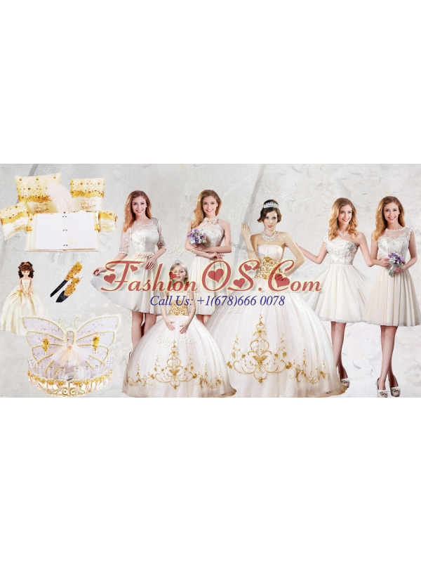 Home >  Quinceanera Dresses >  Quinceaneara Package > Discount Strapless Quinceanera Dresses and Lovely Scoop Mini Quinceanera Dresses and Beautiful Champagne Short Dama Dresses