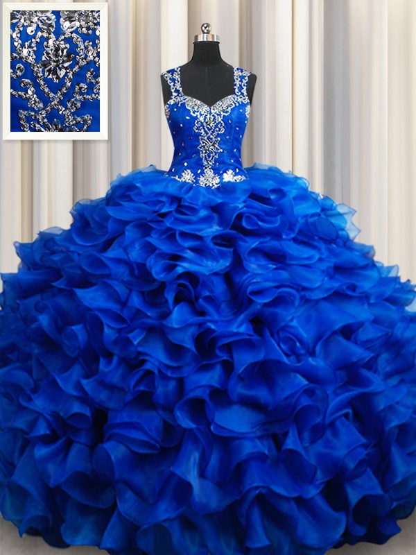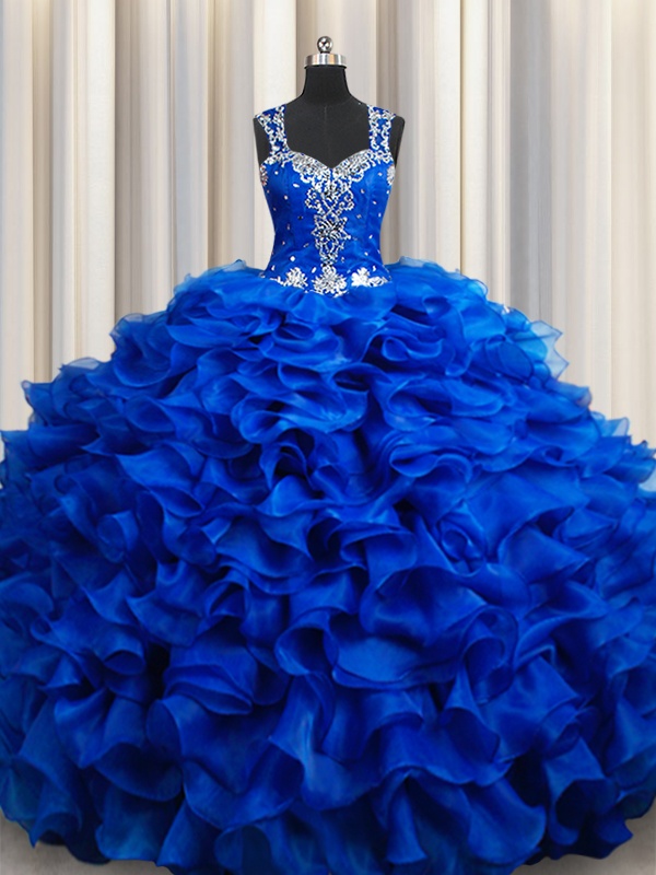 Home >  Quinceanera Dresses >  In Stock Quinceanera Dresses > Discount Straps Organza Sleeveless Floor Length Sweet 16 Dress and Beading and Appliques and Ruffles