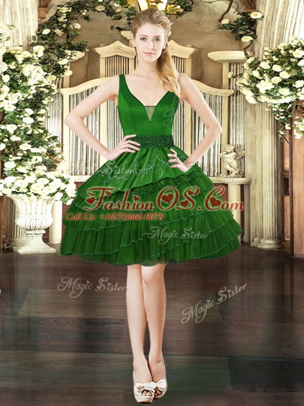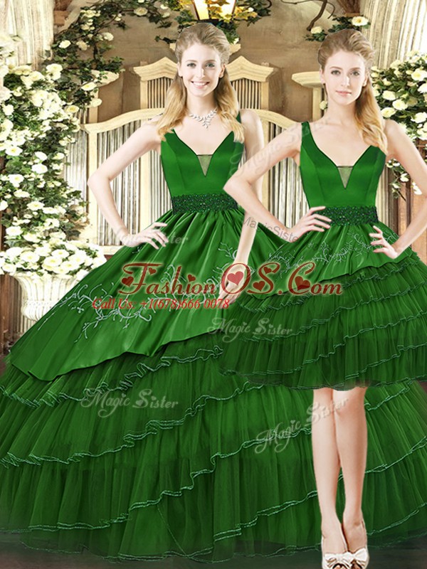 Discount Straps Sleeveless Lace Up Quinceanera Gown Dark Green Tulle