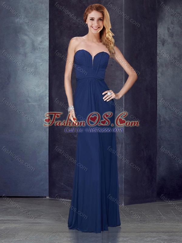 Discount Sweetheart Belted and Ruched Bridesmaid Dress in Navy Blue