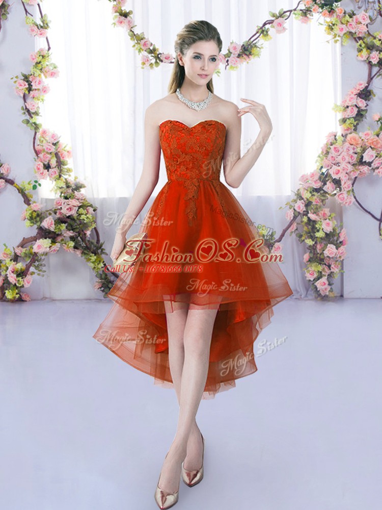 Discount Sweetheart Sleeveless Lace Up Quinceanera Court of Honor Dress Rust Red Tulle