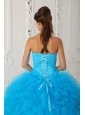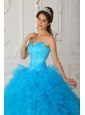 Discount Teal Quinceanera Dress Sweetheart Satin and Organza Beading Ball Gown
