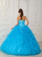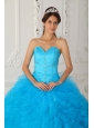 Home >  Quinceanera Dresses >  Popular Quinceanera Dresses > Discount Teal Quinceanera Dress Sweetheart Satin and Organza Beading Ball Gown