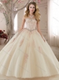 Discount Tulle Champagne Quinceanera Gown with Appliques and Beading