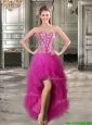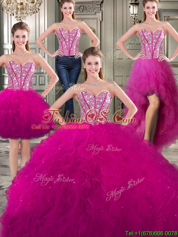 Discount Tulle Fuchsia Detachable Sweet 16 Dresses with Beading and Ruffles