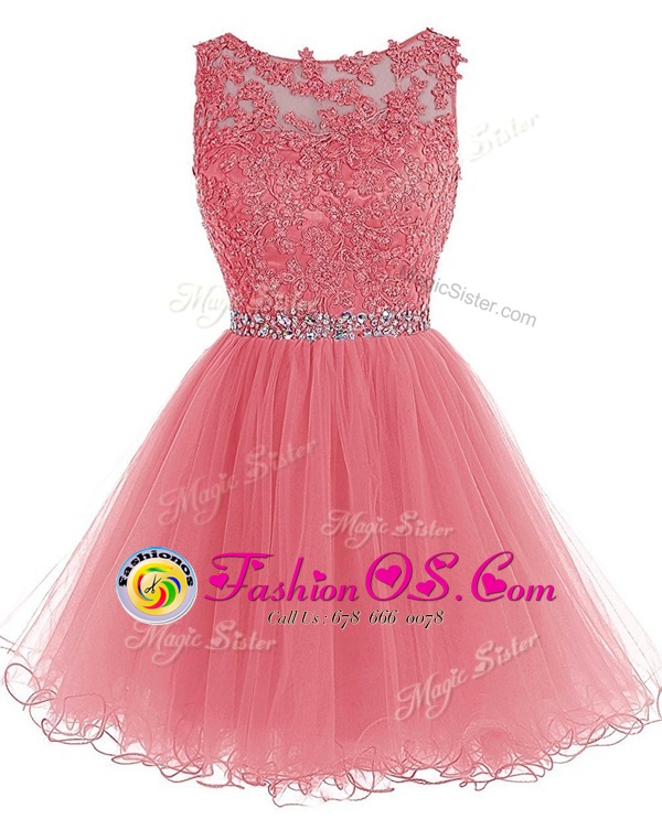Home >  Prom Dresses >  Perfect Prom Dresses > Discount Watermelon Red Zipper Scoop Beading and Lace Evening Dress Chiffon Sleeveless