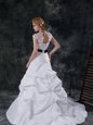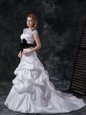 Home >  Wedding Dresses >  Plus Size Wedding Dresses > Discount White High-neck Neckline Beading and Ruching and Pick Ups and Hand Made Flower Wedding Dresses Cap Sleeves Lace Up