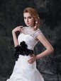 Discount White High-neck Neckline Beading and Ruching and Pick Ups and Hand Made Flower Wedding Dresses Cap Sleeves Lace Up