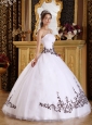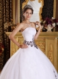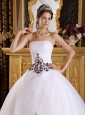 Discount White Quinceanera Dress Strapless Tulle Embroidery Ball Gown