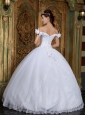 Discount White Sweet 16 Dress Off The Shoulder Organza Appliques Ball Gown