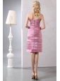 Discout Pink Column Sweetheart Ruffled Layers Mother Of The Bride Dress Knee-length Taffeta