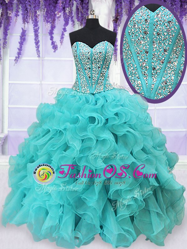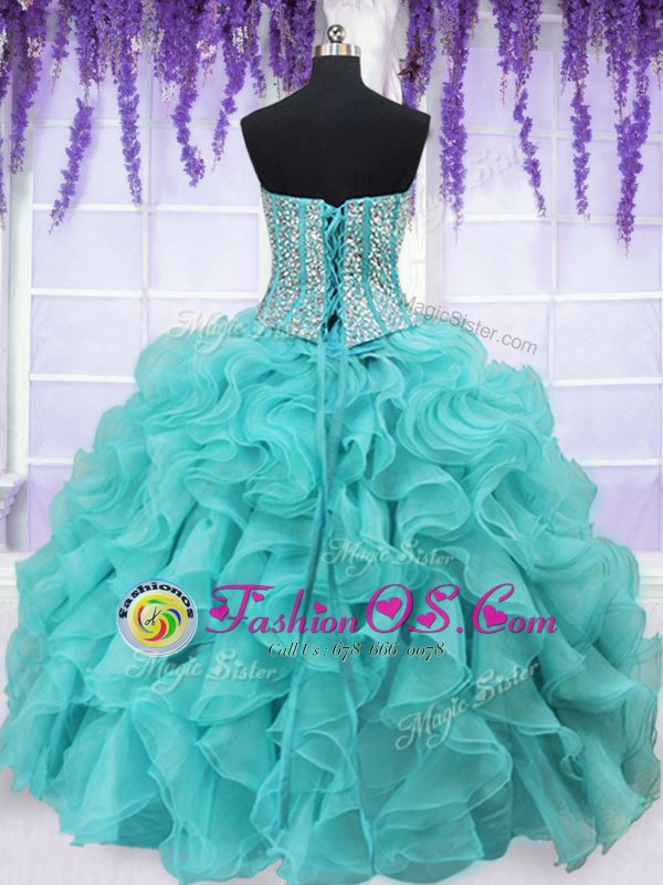 Dramatic Aqua Blue Sweetheart Lace Up Beading and Ruffles Vestidos de Quinceanera Sleeveless