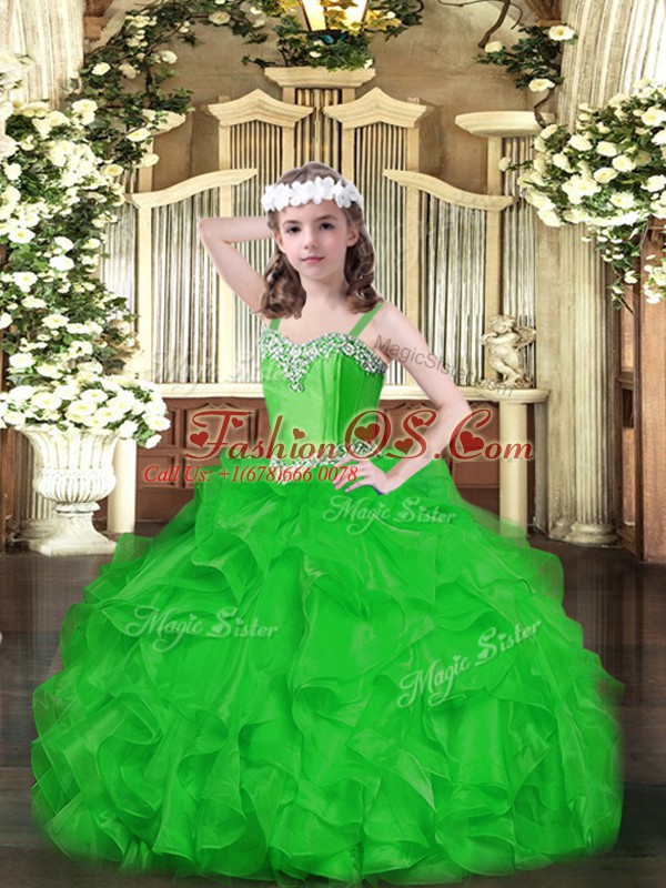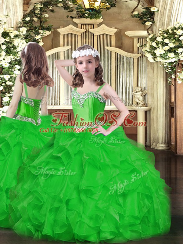 Dramatic Ball Gowns Little Girls Pageant Dress Wholesale Green Straps Organza Sleeveless Floor Length Lace Up