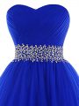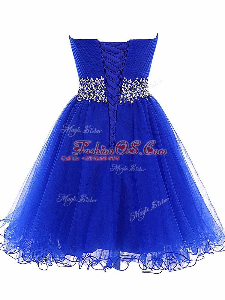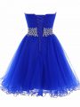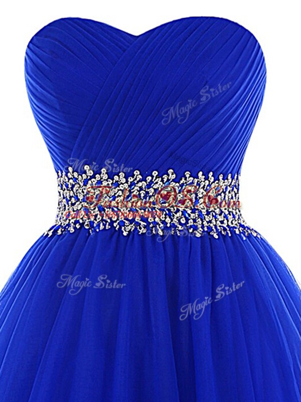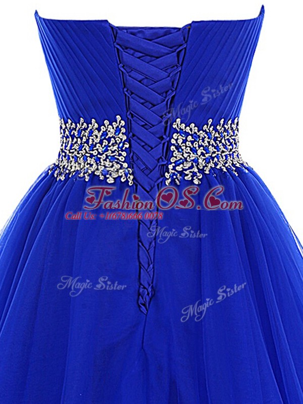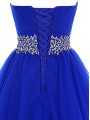 Dramatic Beading and Ruffles Club Wear Royal Blue Lace Up Sleeveless Mini Length