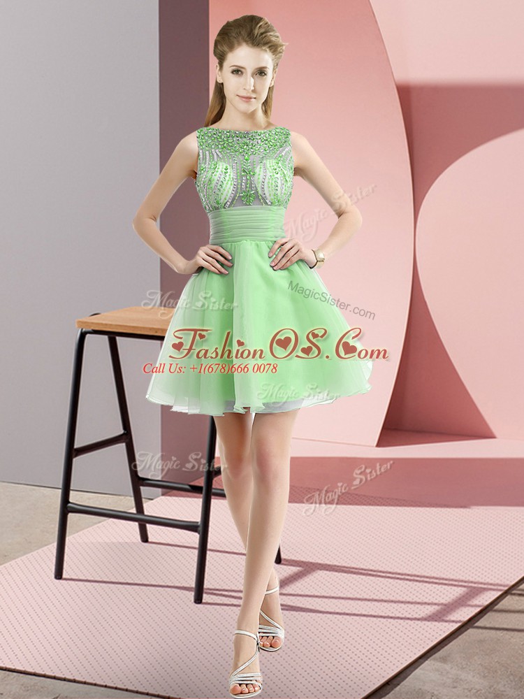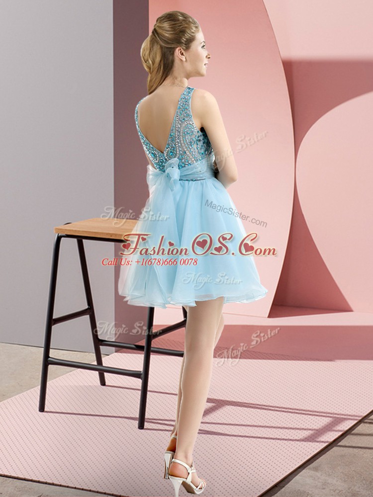 Dramatic Chiffon Sleeveless Mini Length Prom Gown and Beading and Bowknot