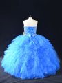 Dramatic Floor Length Ball Gowns Sleeveless Blue 15 Quinceanera Dress Lace Up