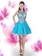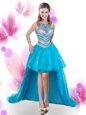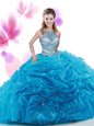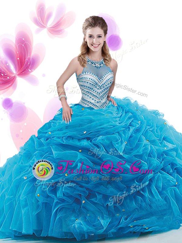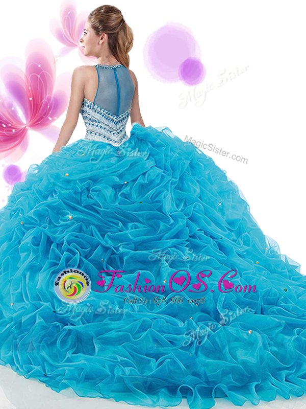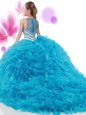 Dramatic Four Piece Ruffles and Pick Ups Sweet 16 Dresses Aqua Blue Zipper Sleeveless With Train Court Train