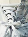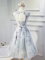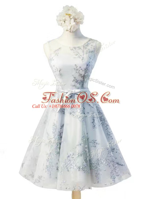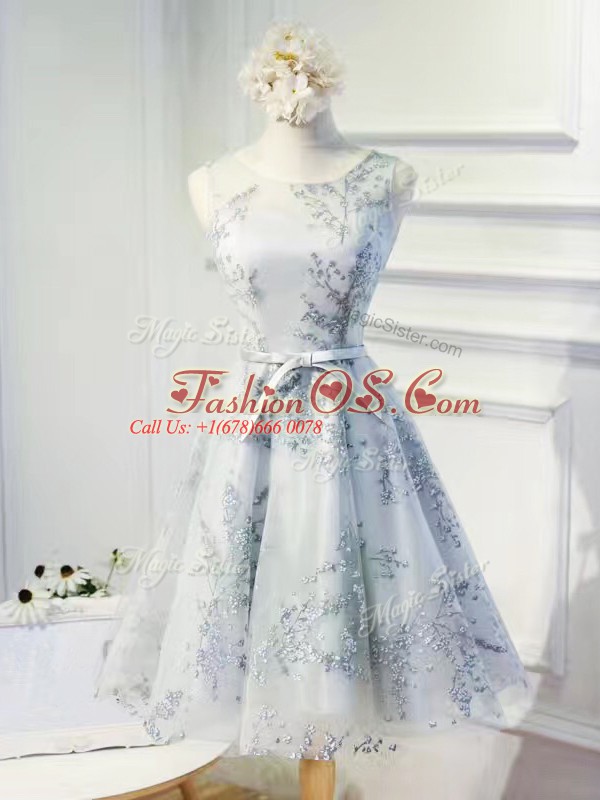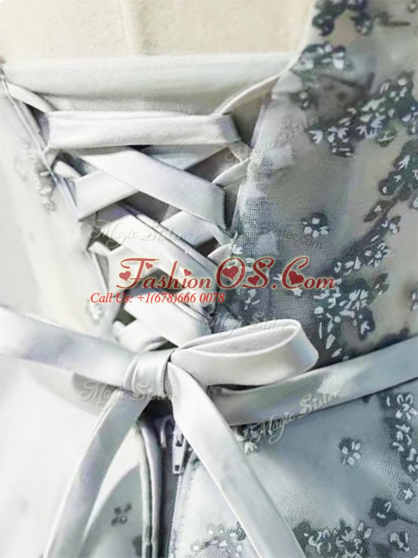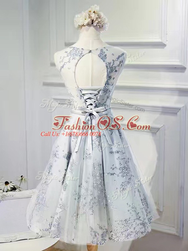 Home >  Special Occasion Dresses >  Cocktail Dresses > Dramatic Grey A-line Organza Scoop Sleeveless Lace and Appliques and Belt Mini Length Lace Up Cocktail Dresses