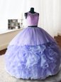Dramatic Lavender Sweet 16 Quinceanera Dress Military Ball and Sweet 16 and Quinceanera and For with Beading and Lace and Ruffles Scoop Sleeveless Brush Train Zipper