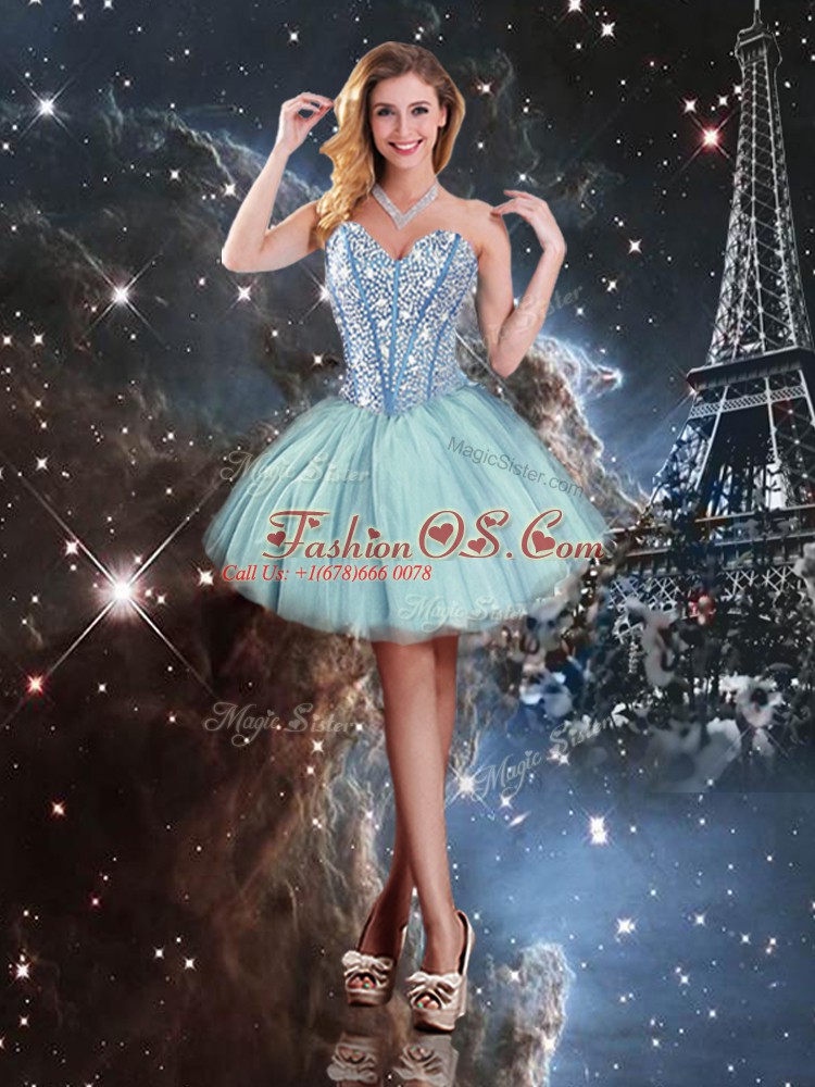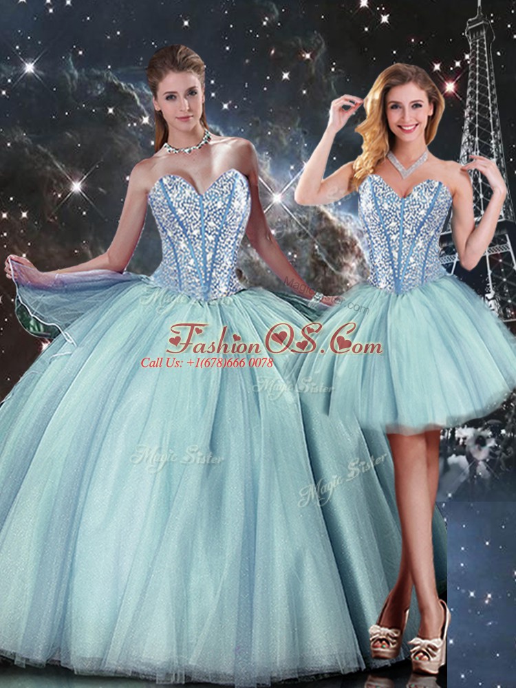 Home >  Quinceanera Dresses >  Detachable Quinceanera Skirts > Dramatic Light Blue Tulle Lace Up Sweet 16 Quinceanera Dress Sleeveless Floor Length Beading