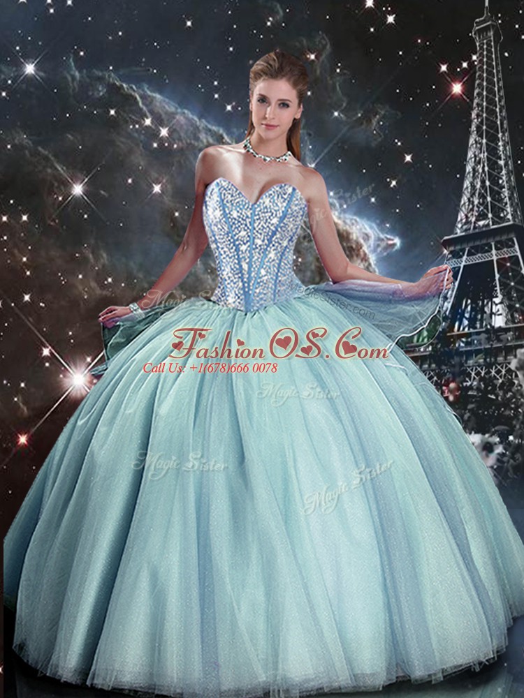 Dramatic Light Blue Tulle Lace Up Sweet 16 Quinceanera Dress Sleeveless Floor Length Beading