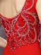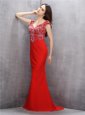 Dramatic Mermaid Red V-neck Neckline Beading and Sequins Evening Gowns Sleeveless Zipper