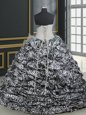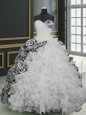 Home >  Quinceanera Dresses >  Popular Quinceanera Dresses > Dramatic Printed White Sweetheart Lace Up Beading and Ruffles and Pattern 15th Birthday Dress Brush Train Sleeveless
