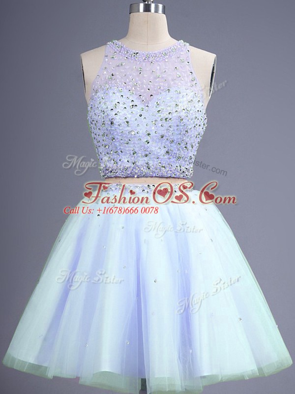 Dramatic Scoop Sleeveless Tulle Bridesmaids Dress Beading Lace Up