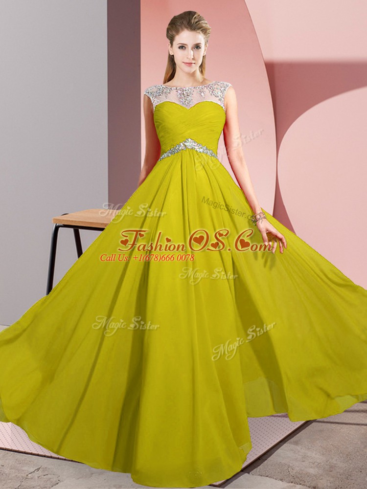 Dramatic Sleeveless Chiffon Floor Length Clasp Handle Party Dresses in Yellow with Beading