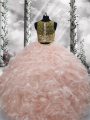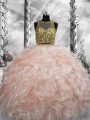 Dramatic Sleeveless Floor Length Beading and Ruffles Zipper Quinceanera Dresses with Peach