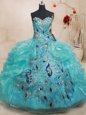 Dramatic Teal Ball Gowns Beading and Embroidery and Ruffles Quinceanera Gowns Zipper Organza Sleeveless Floor Length