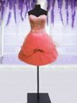 Home >  Quinceanera Dresses >  Custom Made Quinceanera Dresses > Dramatic Three Piece Sleeveless Floor Length Beading and Bowknot Lace Up 15 Quinceanera Dress with Watermelon Red