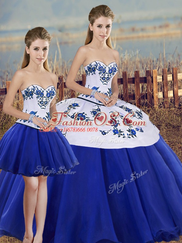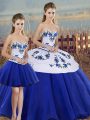 Dramatic Three Pieces Quinceanera Gowns Royal Blue Sweetheart Tulle Sleeveless Floor Length Lace Up