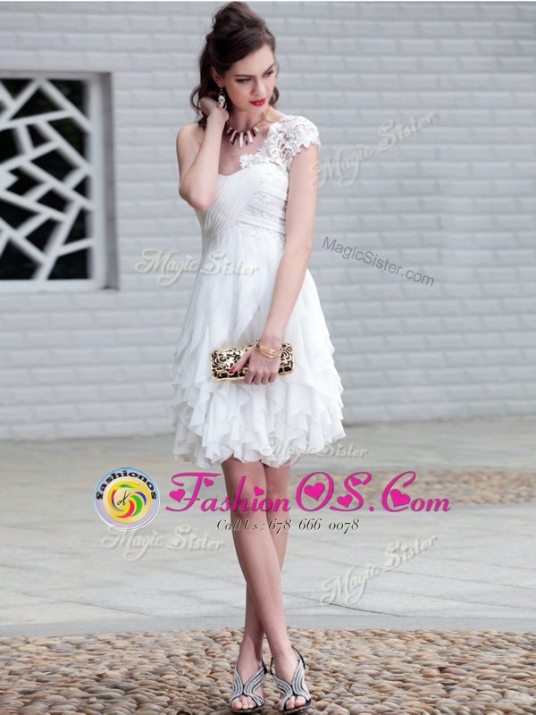 Home >  Prom Dresses >  Prom Dresses On Sale > Dramatic White One Shoulder Neckline Lace and Ruffles Prom Party Dress Sleeveless Zipper