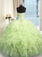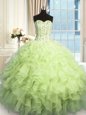 Dramatic Yellow Green Sleeveless Floor Length Beading and Ruffles and Sequins Lace Up 15th Birthday Dress