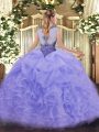 Dynamic Apple Green Lace Up Scoop Beading and Ruffles Quinceanera Gowns Organza Sleeveless