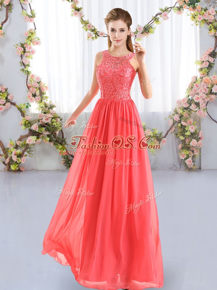 Home >  Special Occasion Dresses >  Cheap Dama Dresses > Dynamic Coral Red Scoop Neckline Lace Dama Dress for Quinceanera Sleeveless Zipper