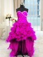 Dynamic Four Piece Fuchsia Three Pieces Beading and Ruffles and Ruching Quinceanera Dress Lace Up Organza Sleeveless Floor Length
