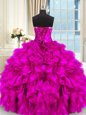Home >  Quinceanera Dresses >  Luxurious Quinceanera Dresses > Dynamic Four Piece Fuchsia Three Pieces Beading and Ruffles and Ruching Quinceanera Dress Lace Up Organza Sleeveless Floor Length