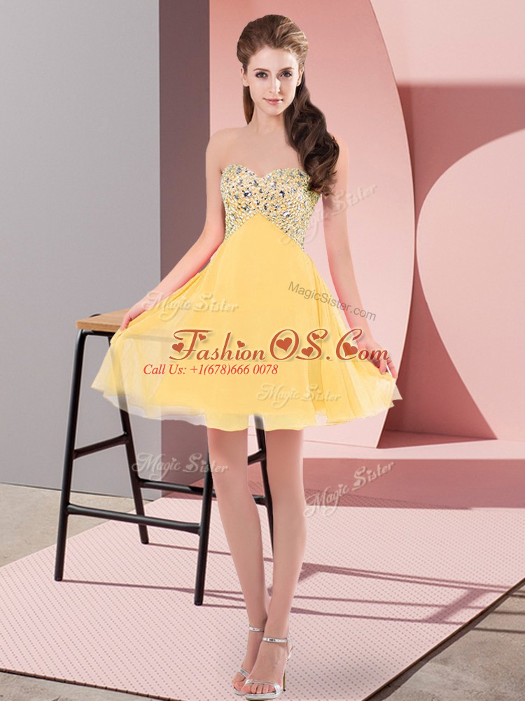 Dynamic Gold Empire Beading Prom Dress Lace Up Chiffon Sleeveless Mini Length