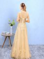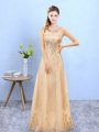 Home >  Bridesmaid Dresses >  Elegant Bridesmaid Dresses > Dynamic Gold Empire Scoop Sleeveless Organza Floor Length Lace Up Beading and Appliques Bridesmaid Dresses